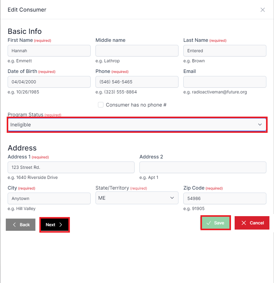 Select Save. The consumer will be cleared from the system at the end of the day.