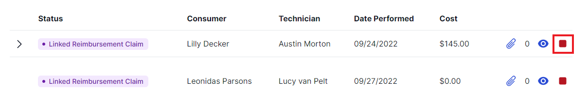 Select View (blue eye icon) next to the reimbursement to which you want to add an attachment.